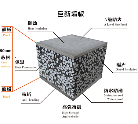 巨新轻质墙板由硅酸钙板、水泥、聚苯颗粒、多种轻集料组成所以保温。