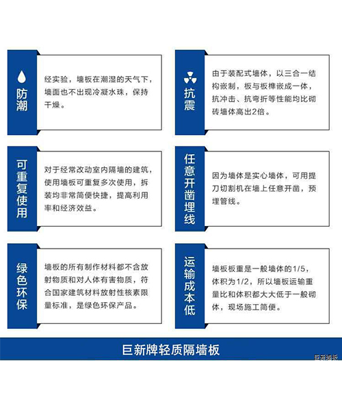 巨新复合实芯墙板质量轻,对于建筑物基础结构设计,可以优化建筑物结构